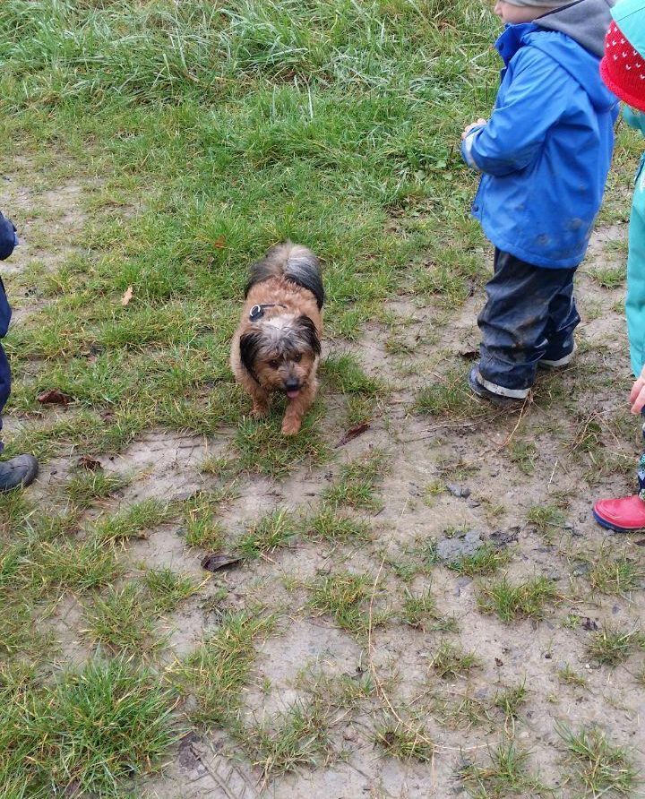 An einem anderen Tag hatten wir Besuch von Kläuschen, dem Hund, und alle Kinder wollten ihn mal streicheln, die Leine halten oder ein Stöckchen werfen. Wir kamen an Sträuchern mit leuchtend pinken Früchten vorbei und erfuhren, dass diese für den Menschen sehr giftig sind und Pfaffenhütchen heißen.